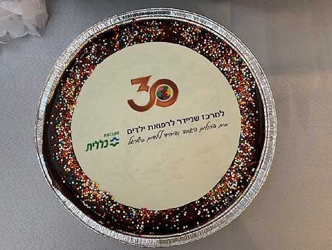 Yesterday we all celebrated – staff and children. Hospital management greeted every employee with a small birthday item; a magnet photograph stand offered mementoes to everyone; balloons festooned the atrium; and a special card presented to all incomers. Yeladim Shelanu arranged for artists to hand out presents to every child in all the departments, units and clinics.